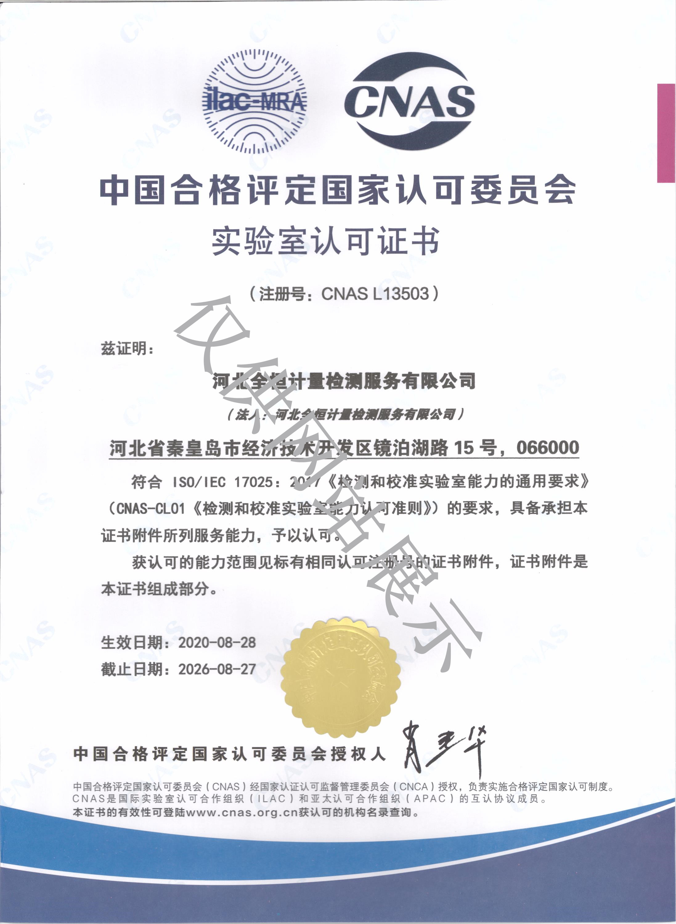 2020年11月27日至29日,來(lái)自中國(guó)合格評(píng)定國(guó)家認(rèn)可委員會(huì)的評(píng)審專(zhuān)家組一行蒞臨河北全恒計(jì)量檢測(cè),